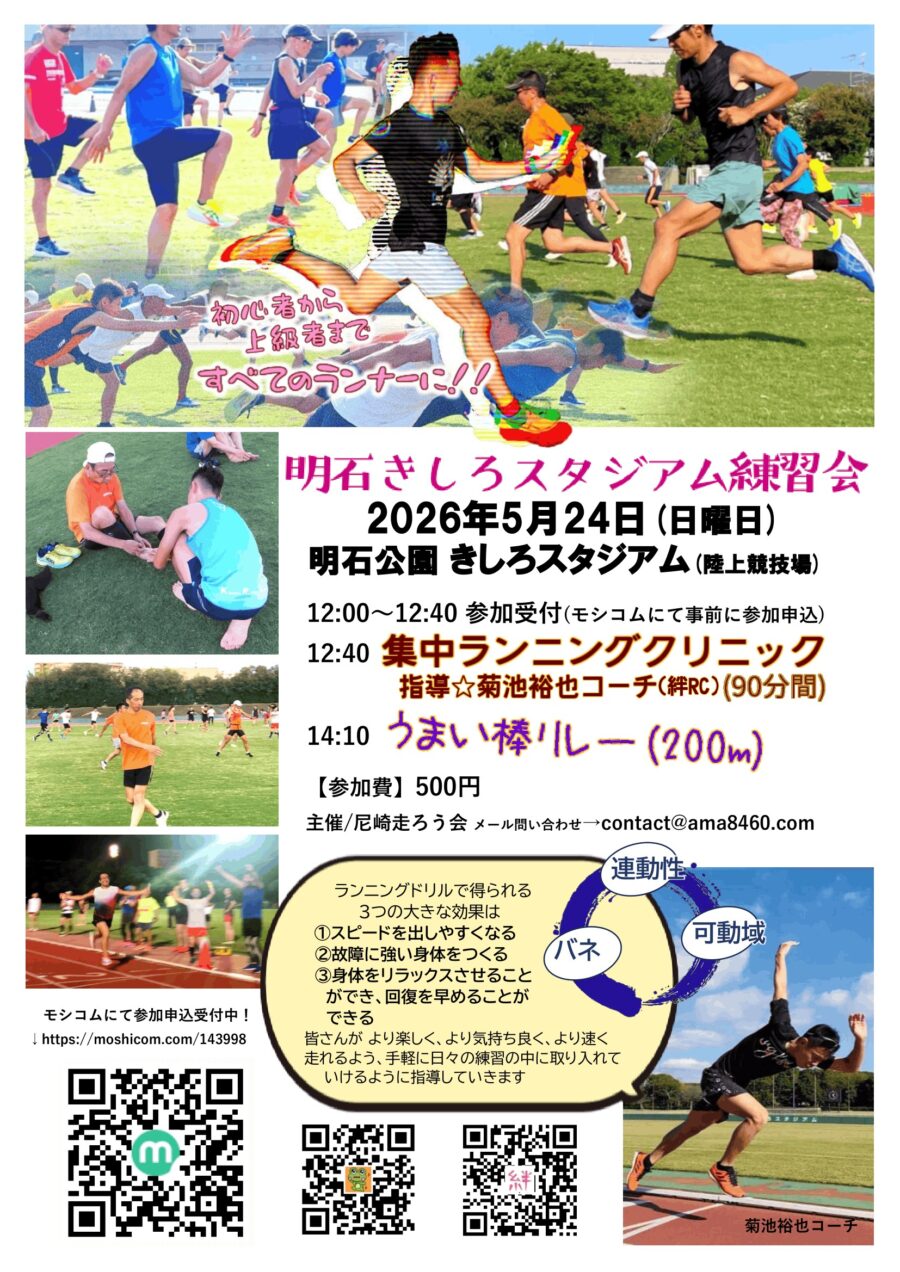 【モシコムで参加申込】5月24日 明石きしろスタジアム練習会