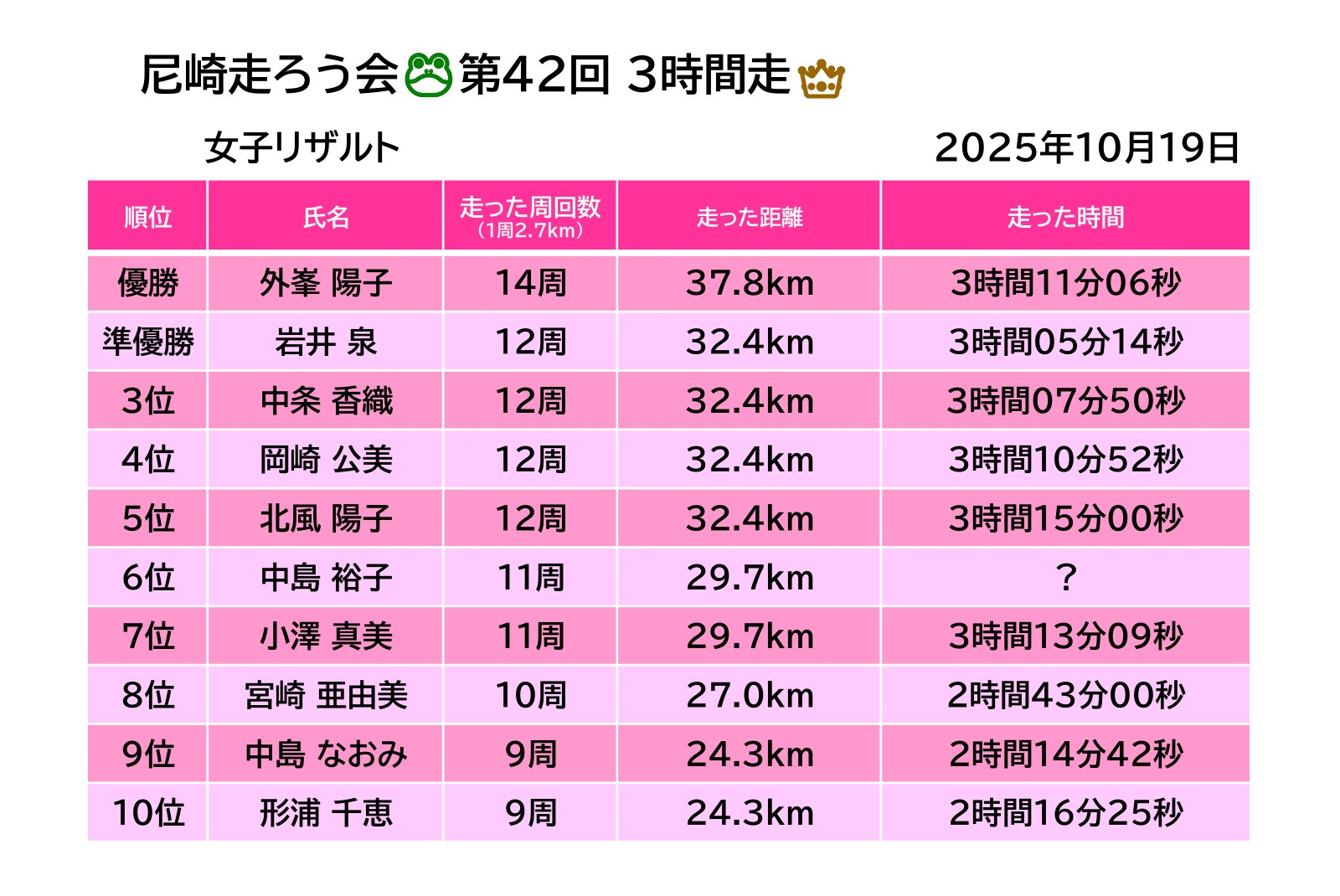 周回数やタイムを未記入の方、ご連絡くださいね!