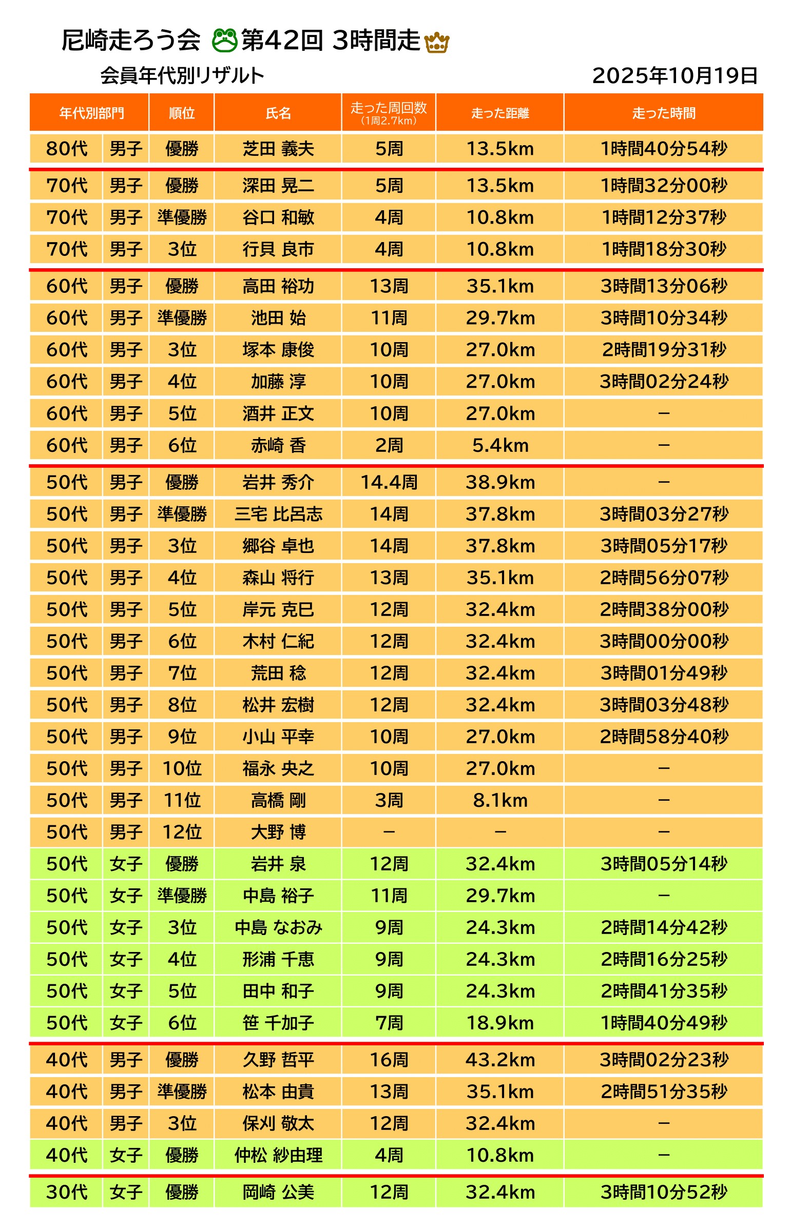 尼崎走ろう会会員リザルト