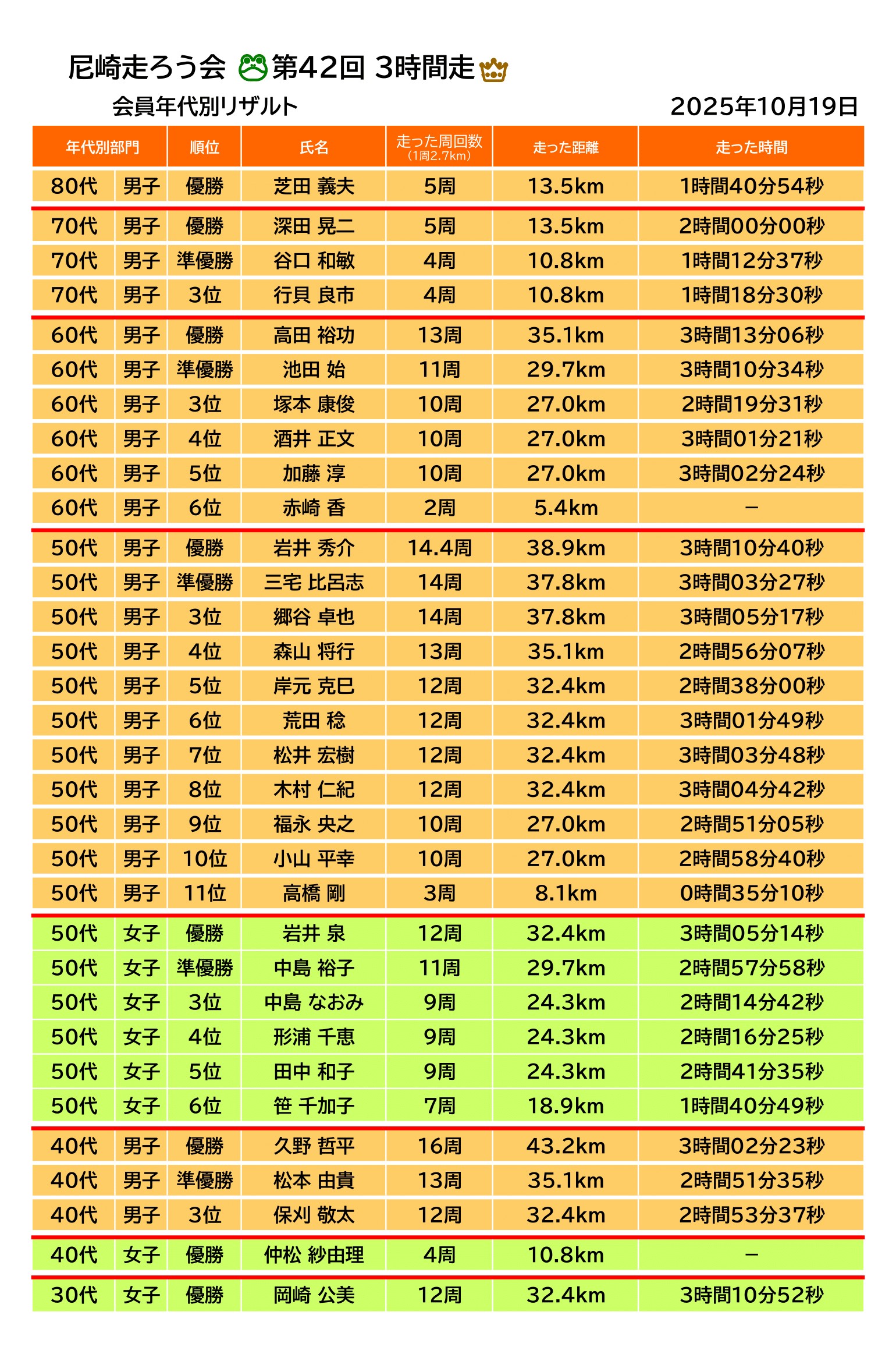 3時間走には高齢のレジェンドランナーも多く出走されます。